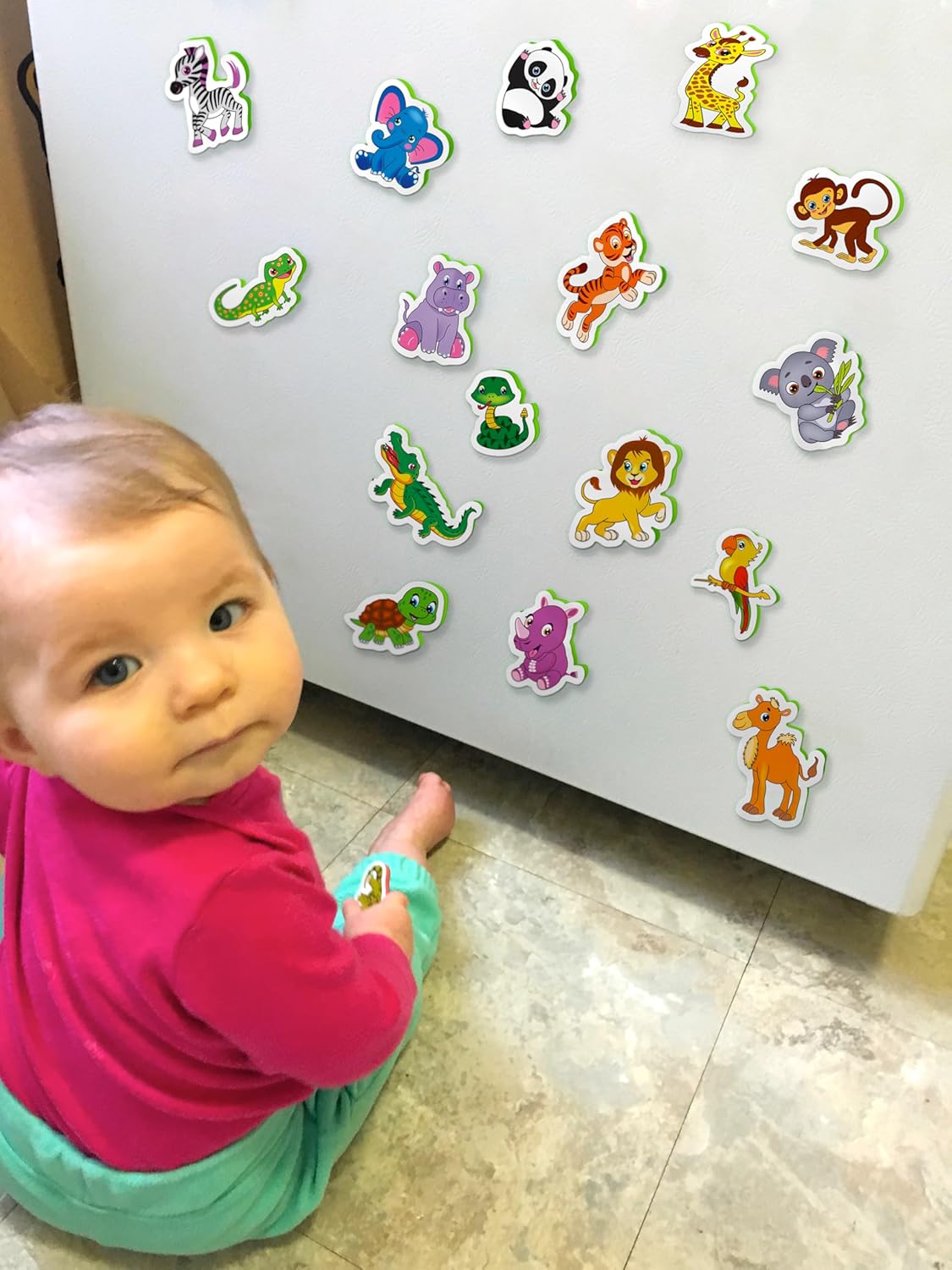 Now, you have an assistant – Thanks to cool fridge magnets the kid is keen about his game, and you have more time to do your work about the house. Keep magnets on the lower part of the fridge so baby can access them easy.