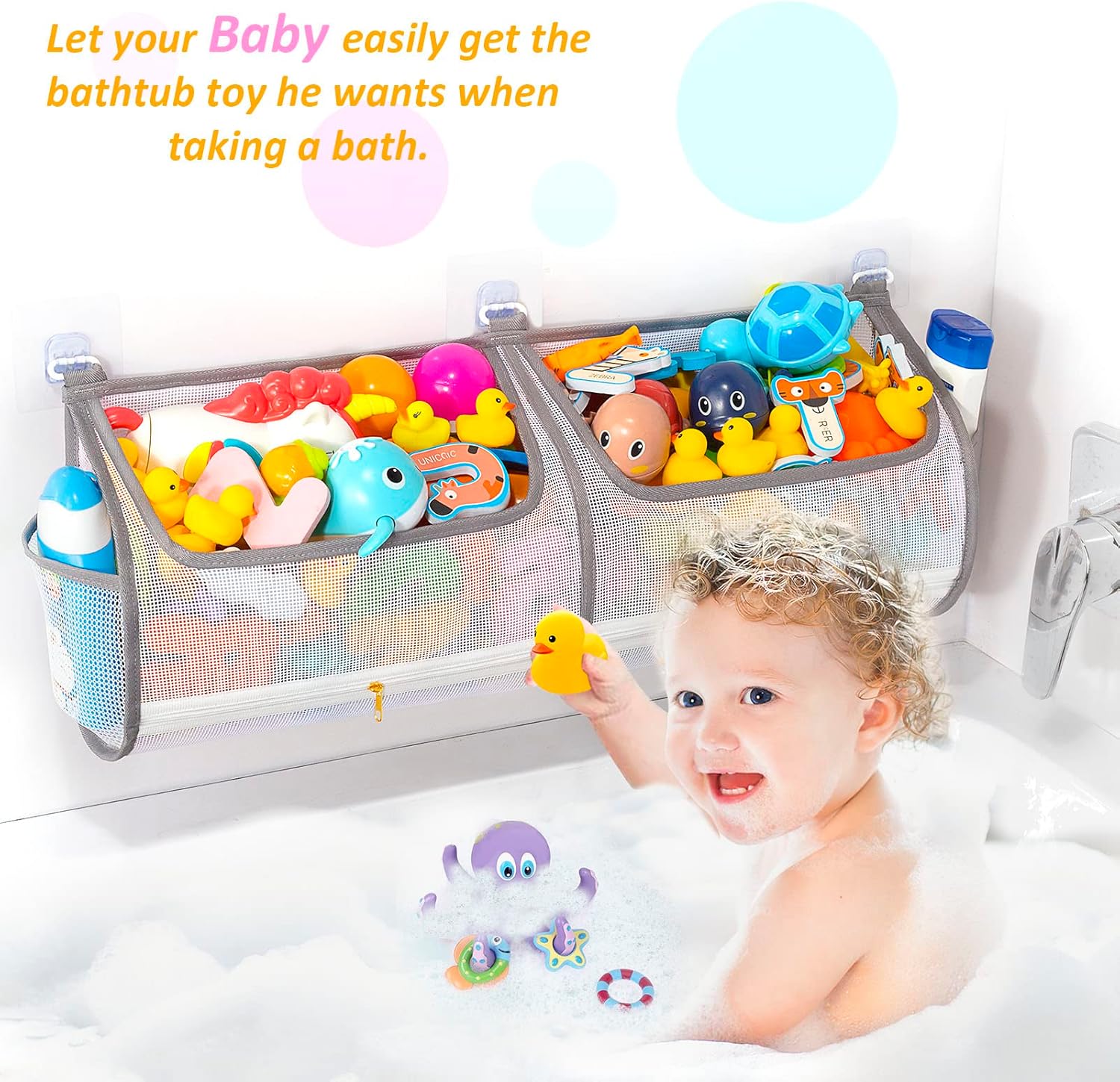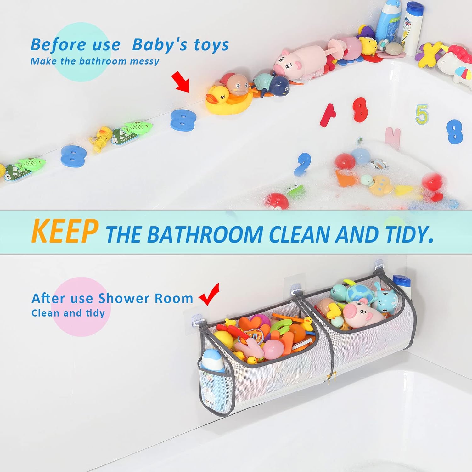 LARGE CAPACITY- With the increase of the capacity of the bath toy storage room, it can accommodate all baby bath toys and keep the bathroom clean and tidy