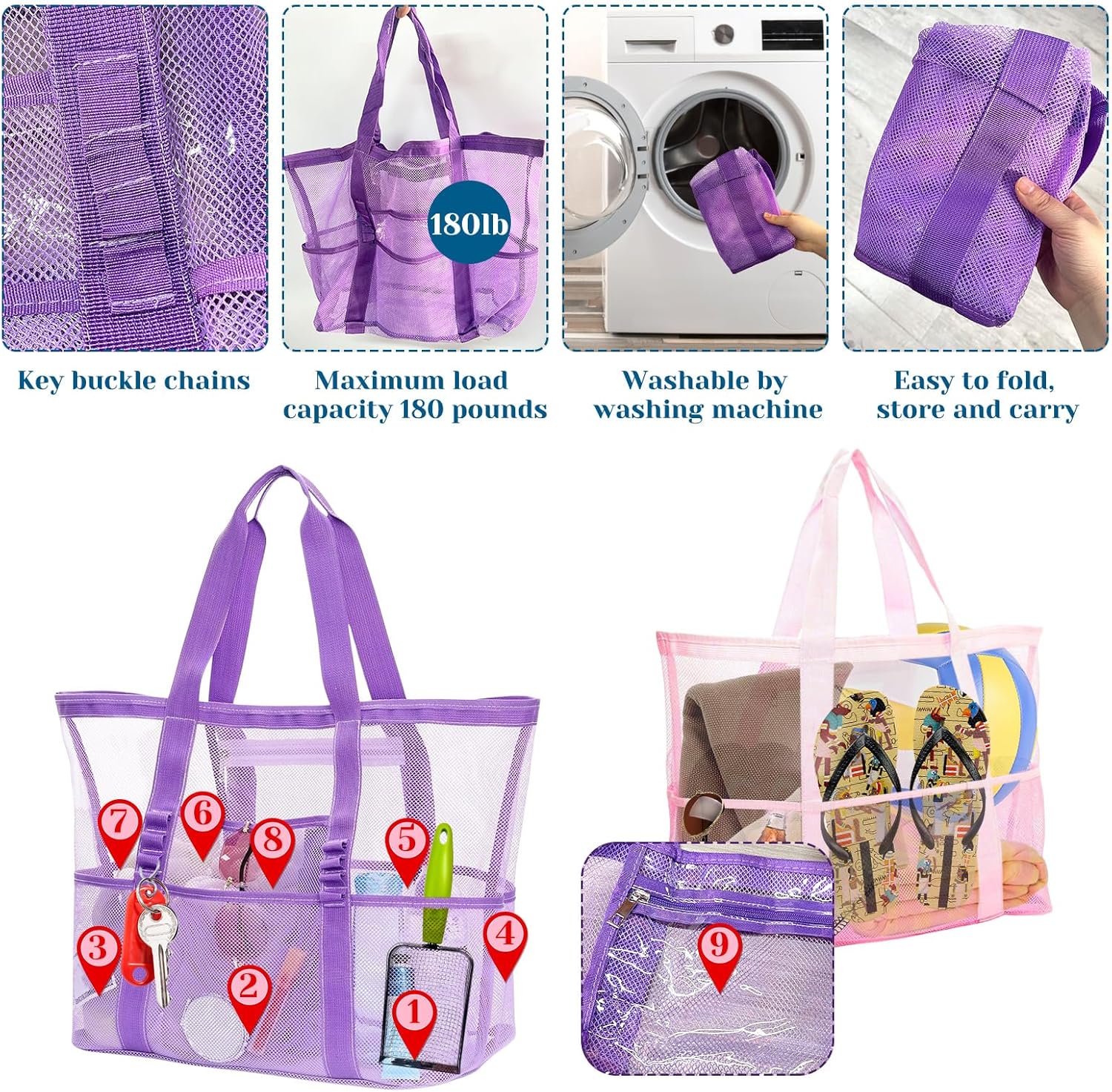 1 zippered inside pockets made of opaque fabric, zippered pockets to keep items private, secure and dry, plus 8 mesh pockets to keep everything in one beach bag!