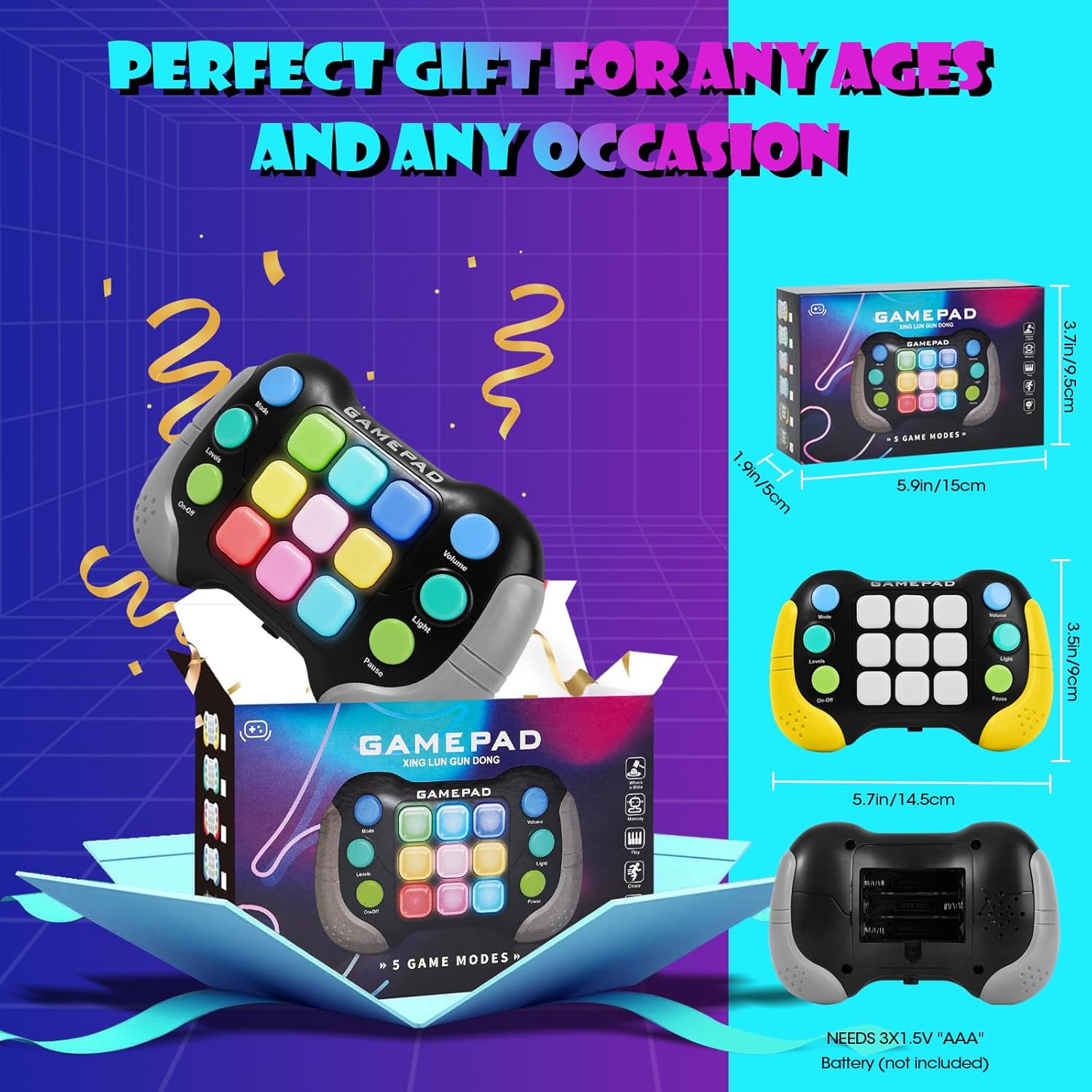🎁【BEST GIFT】This is a great gadget for children, teenagers and even adults. It also comes with a colorful box, making it an ideal birthday gift, children’s day, Thanksgiving, Halloween, and Christmas. Equipped with music and colorful lights, this children’s game can be played anywhere and anytime to keep them away from TV and cell phones! In addition, it is also a good helper for you to relieve your work stress!