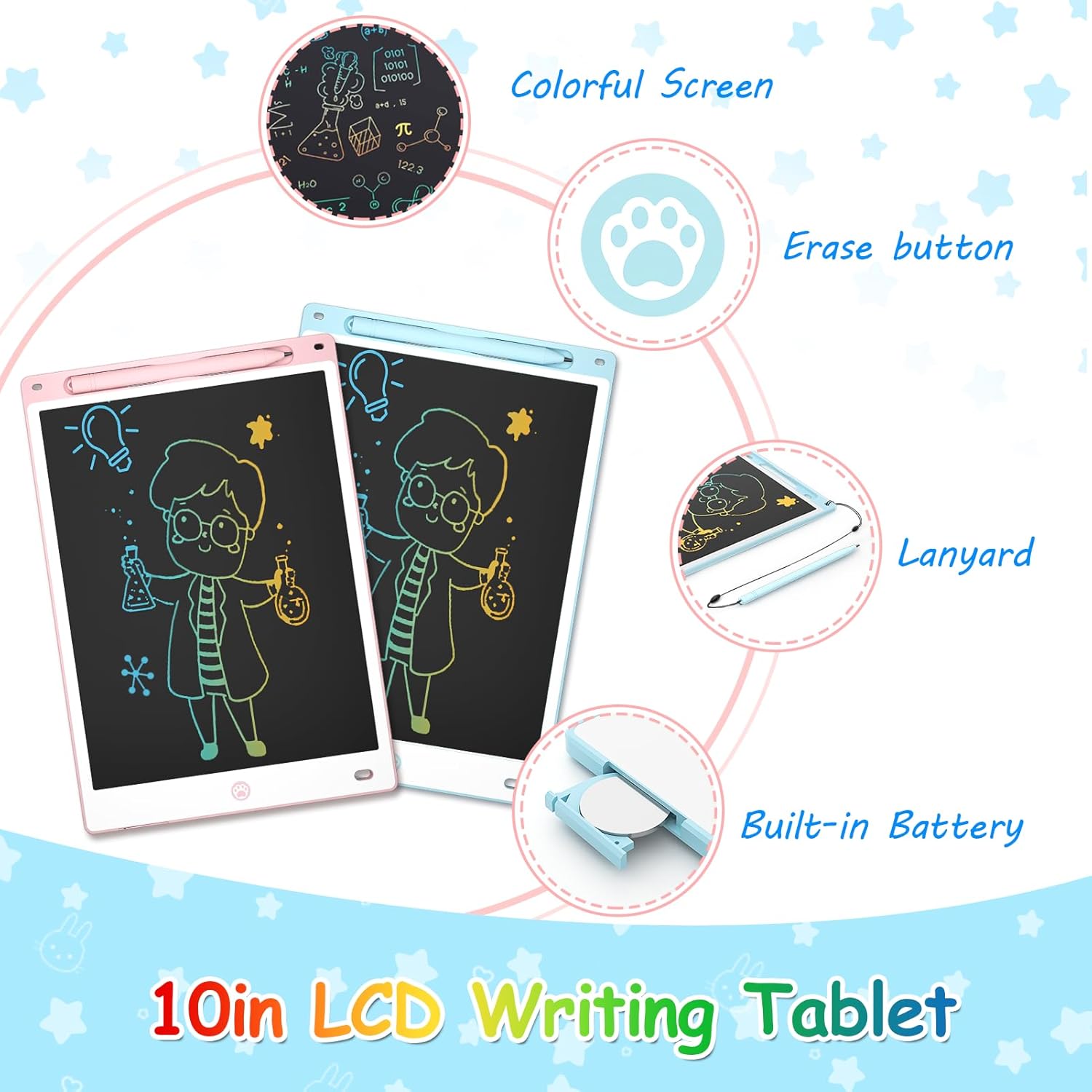 【Value Pack of Two Tablets】 Our package contains two 10-inch LCD writing tablets, and comes with two anti-lost lanyards and two batteries. We use and provide you with CR2025 button batteries, each battery can withstand more than 100,000 erasures, enough for children to play for a long time.