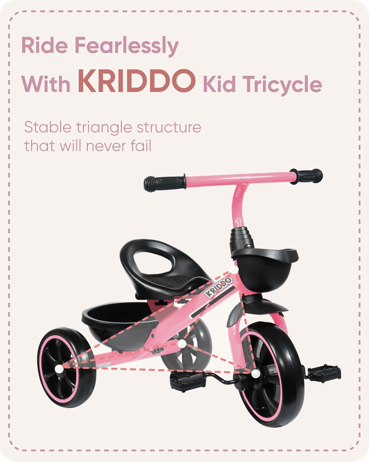 TODDLER TRICYCLE – KRIDDO kids tricycle is designed for 24-48 month toddler girls & boys who are curious and exited to explore the world, it helps to develop kids’ steering skills, steering and coordination at an early age. KRIDDO kids trike for 2 year old let your kids enjoy riding and gain confidence, as well as develop muscle strength, it’s a fun gift for your little ones.