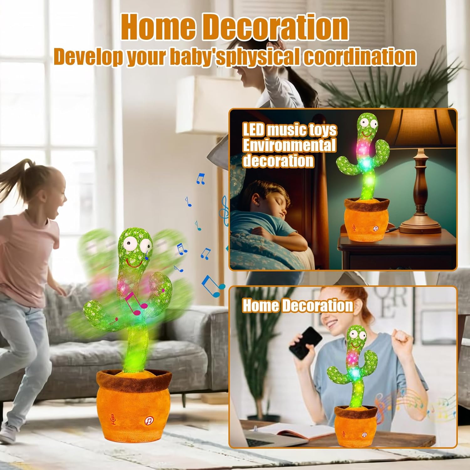 Familly Fun:This curious, expressive cactus toys likes to play with you during the day. In night mode, singing cactus makes a deep sleep sound and plays soft music. Talking cactus toy is the best friend day and night!