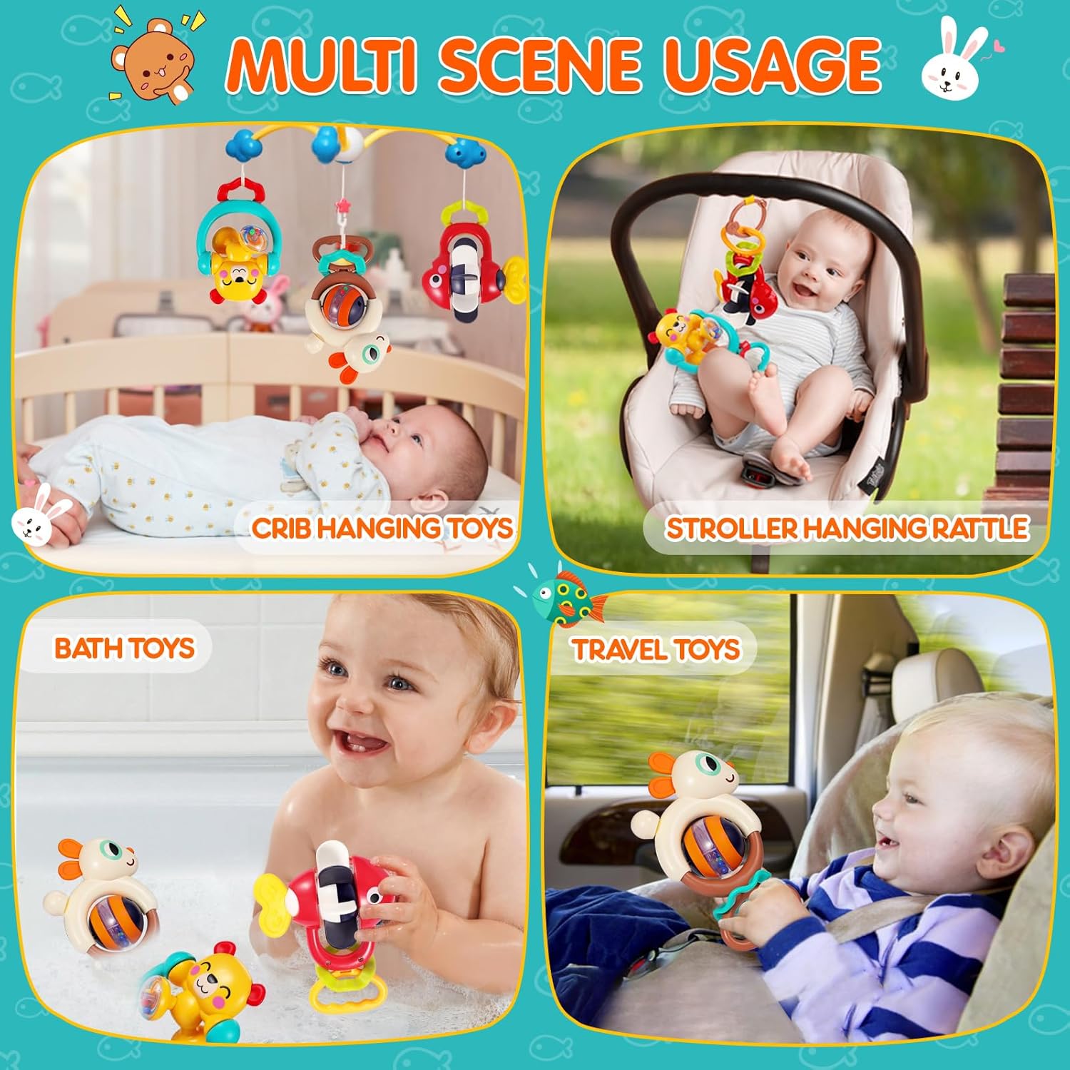 ENJOY ENDLESS FUN IN MULTI-SCENE: The kawaii rattles toddler toys age 1-2 has a handle design, suitable for your baby’s little hands to hold. Your baby could take the 1 year old toys to anywhere, perfect as baby crib toys, crawling infant toys, bath-time toys, travel toys and etc. Prepare the rattles toy for 1 2 year old boys girls, help baby to get ride of bored and restless anytime.