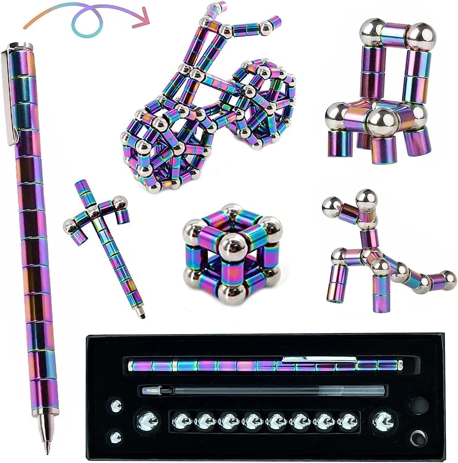 DEFORMABLE FIDGET PEN: This fidget pen decompression magnetic fidget toy pen is not just a pen, also be a finger fidget toy. It can be rotated and transformed into a variety of creative, free combination, multiple and diverse plays.