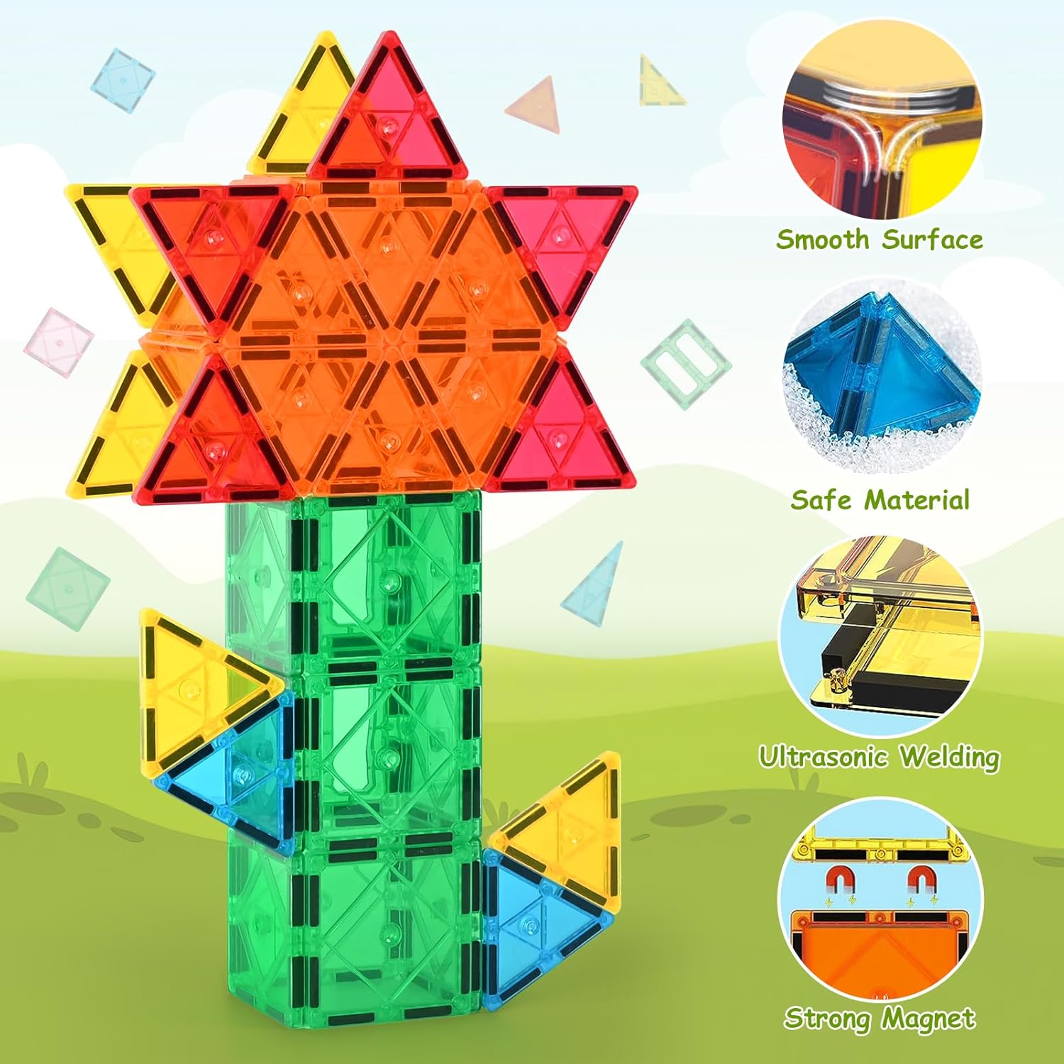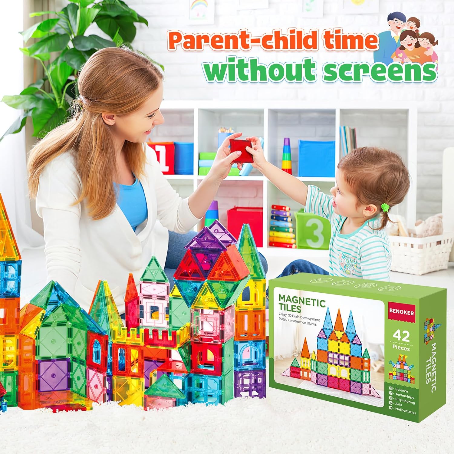 Magnetic Tiles Kids Toys, STEM Montessori Toddler Kids Toys Building Sets Gifts for Boys and Girls Safe Toddler Kids Toys-Classroom Must Haves (42P)