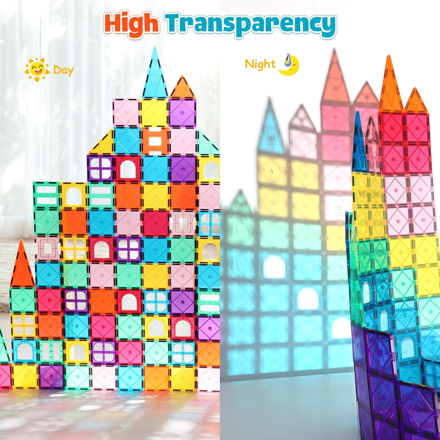 STEM MONTESSORI & SENSORY TOYS:With colorful tiles, children’s creativity can be stimulated. While having fun and being creative, kids can use the magnetic tiles to develop STEM-related skills such as pattern recognition, magnetic principles, and problem solving. These tiles can also be used as sensory toys to enhance sensory play. Purchase BENOKER magnetic tiles today and start exploring all the different ways you can use them!