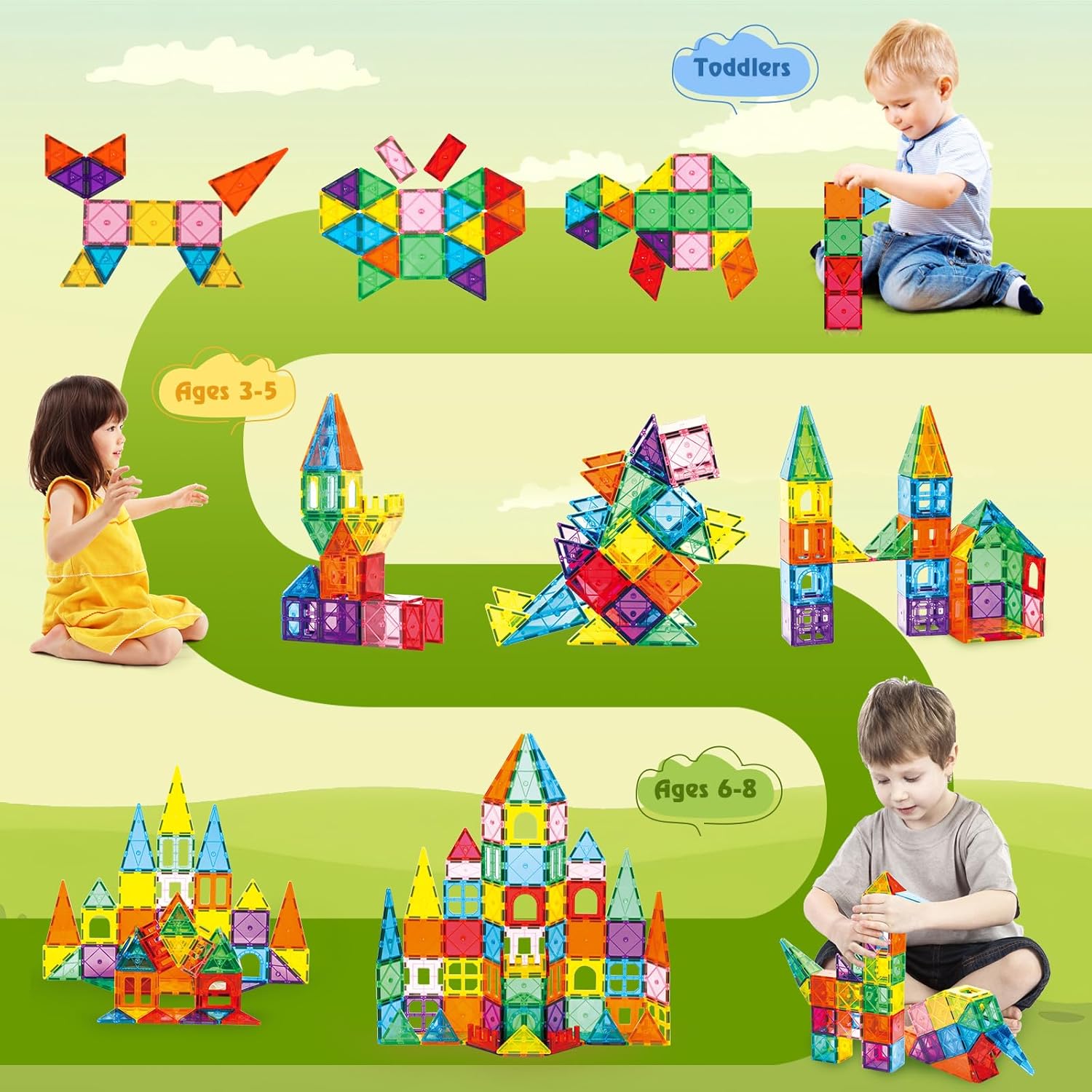 MORE MAGNET DESIGN: All tiles use reinforced magnets and are perfectly sized for small hands. Tile sizes are compatible with other leading brands of tiles, you can use this set to expand and complement your existing tiles with a collection of colors and a variety of shapes! More tiles, more fun!