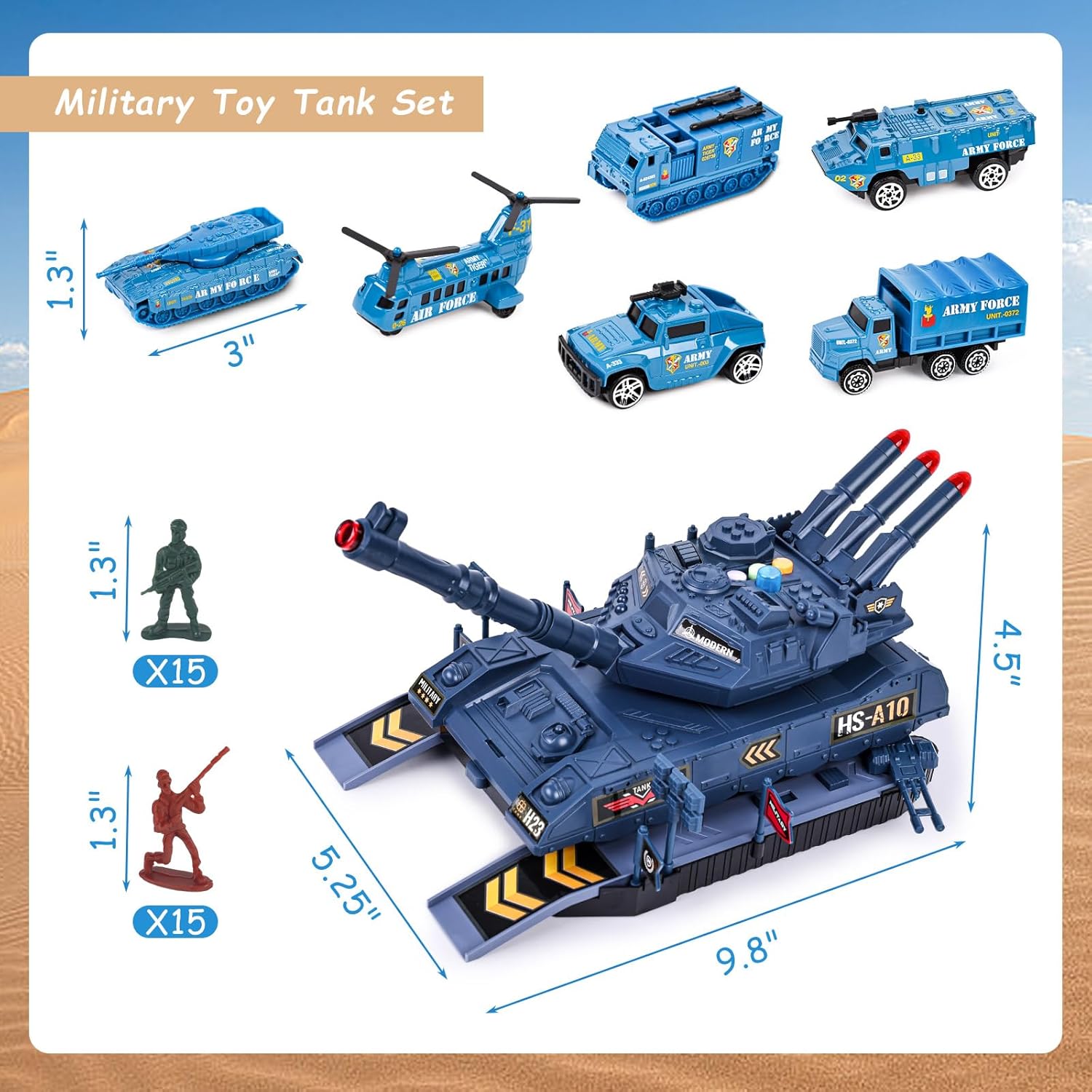 Full of Fun – Immerse your child in the world of military operations with our comprehensive tank playset. Perfect for young military enthusiasts, this toy set combines tanks and vehicles, making it an ideal holiday or birthday gift.