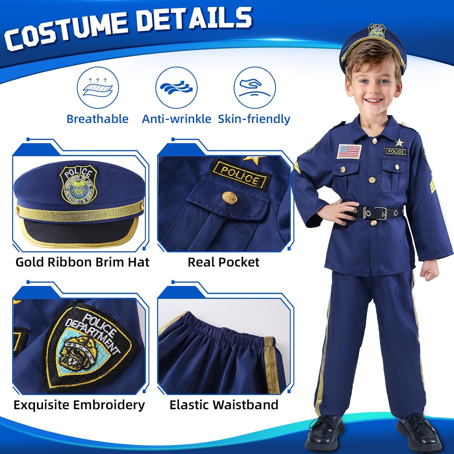 The quality of this police Halloween costume for kids is excellent, made of polyester fabric that is soft and cozy, ensuring optimal comfort for your child.