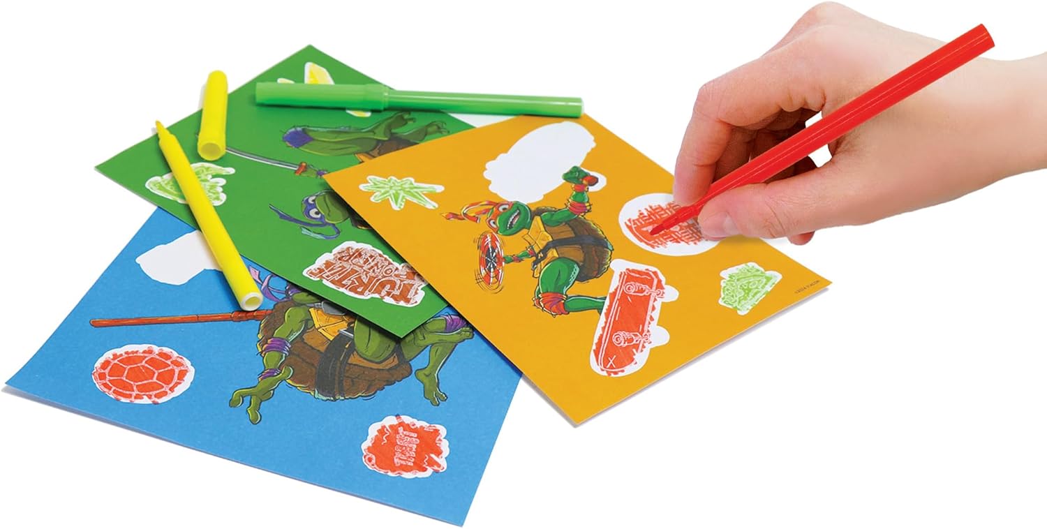 Metallic Poster Fun: Let the artistic flair of your child shine as they color and decorate dazzling metallic posters. With TMNT as the backdrop to their creative endeavors, these posters become a canvas for your child’s imagination to flourish.