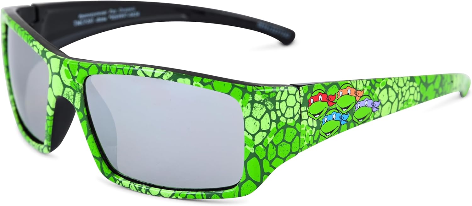 Unleash the power of the Teenage Mutant Ninja Turtles with these awesome boys’ sunglasses! Designed especially for kids ages 3-10, these sunglasses are a must-have accessory for any young fan of Leonardo, Michelangelo, Donatello, and Raphael. Our sunglasses and matching case are adorned with vibrant artwork and graphics featuring your favorite Teenage Mutant Ninja Turtles. Your child will love showing off their favorite heroes in a half shell! Keep your little one’s eyes safe from harmful UV rays with our high-quality, UV-protective lenses. Perfect for sunny days at the park, beach, or any outdoor adventure. Made from sturdy, child-friendly materials, these sunglasses are built to withstand the active lifestyle of young boys. The comfortable fit ensures they can wear them all day long without discomfort. Each pair of sunglasses comes with a matching case, featuring the same cool TMNT graphics. The case provides excellent protection and makes it easy to carry the sunglasses wherever they go. Whether it’s for a birthday, holiday, or just because, these Teenage Mutant Ninja Turtles sunglasses make an ideal gift for any boy who loves the heroes in a half shell. Watch their eyes light up with excitement as they open their very own TMNT sunglasses and matching case! Equip your young turtle fan with the coolest sunglasses around and let them step out in style with their favorite ninja heroes. Order now and add a touch of TMNT magic to their everyday adventures!