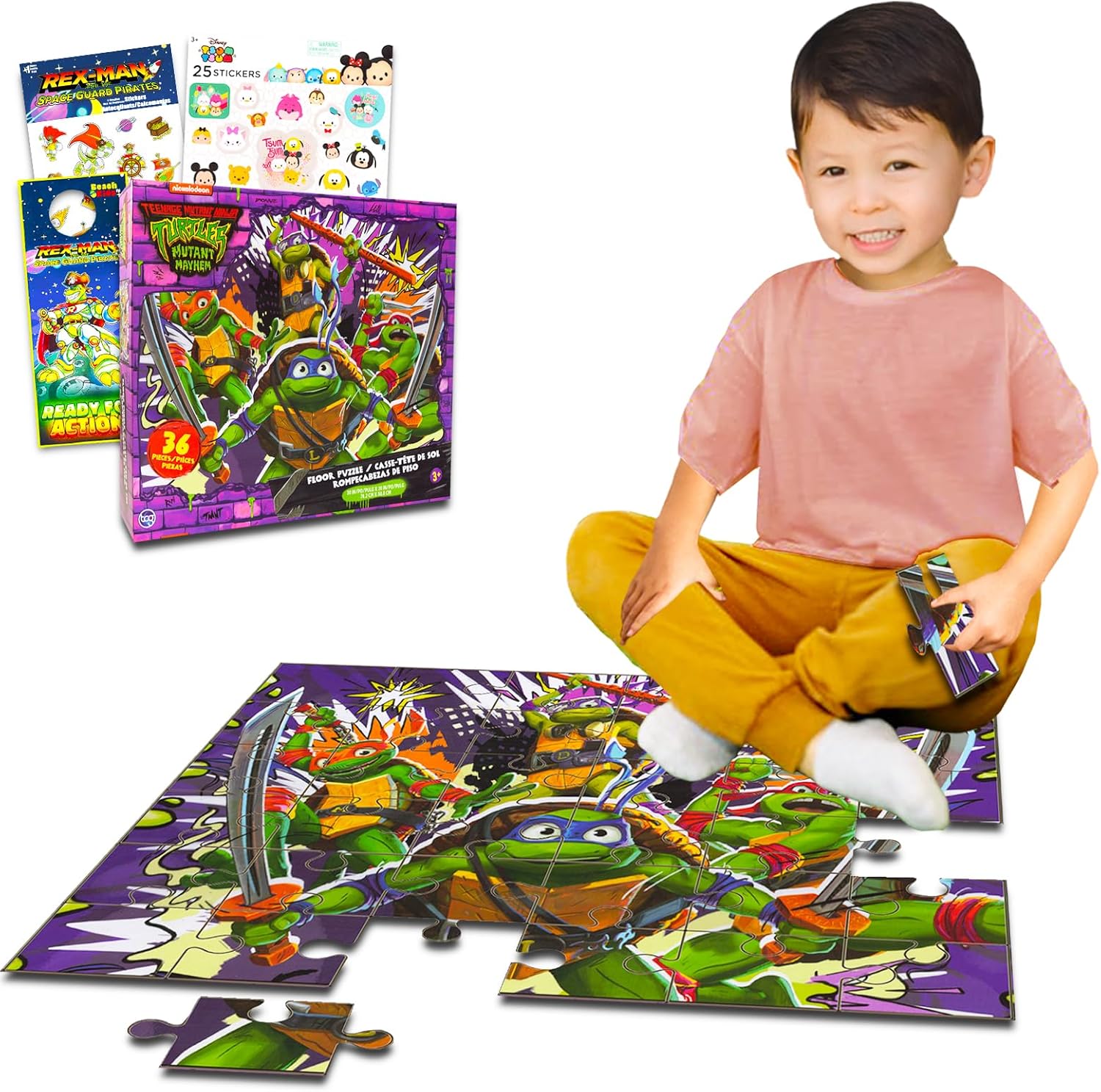 Teenage Mutant Ninja Turtles Floor Puzzle for Kids Set – Bundle with 36 Piece TMNT Floor Puzzle Plus Stickers, More | Teenage Mutant Ninja Turtles Puzzles for Kids Ages 4-8.