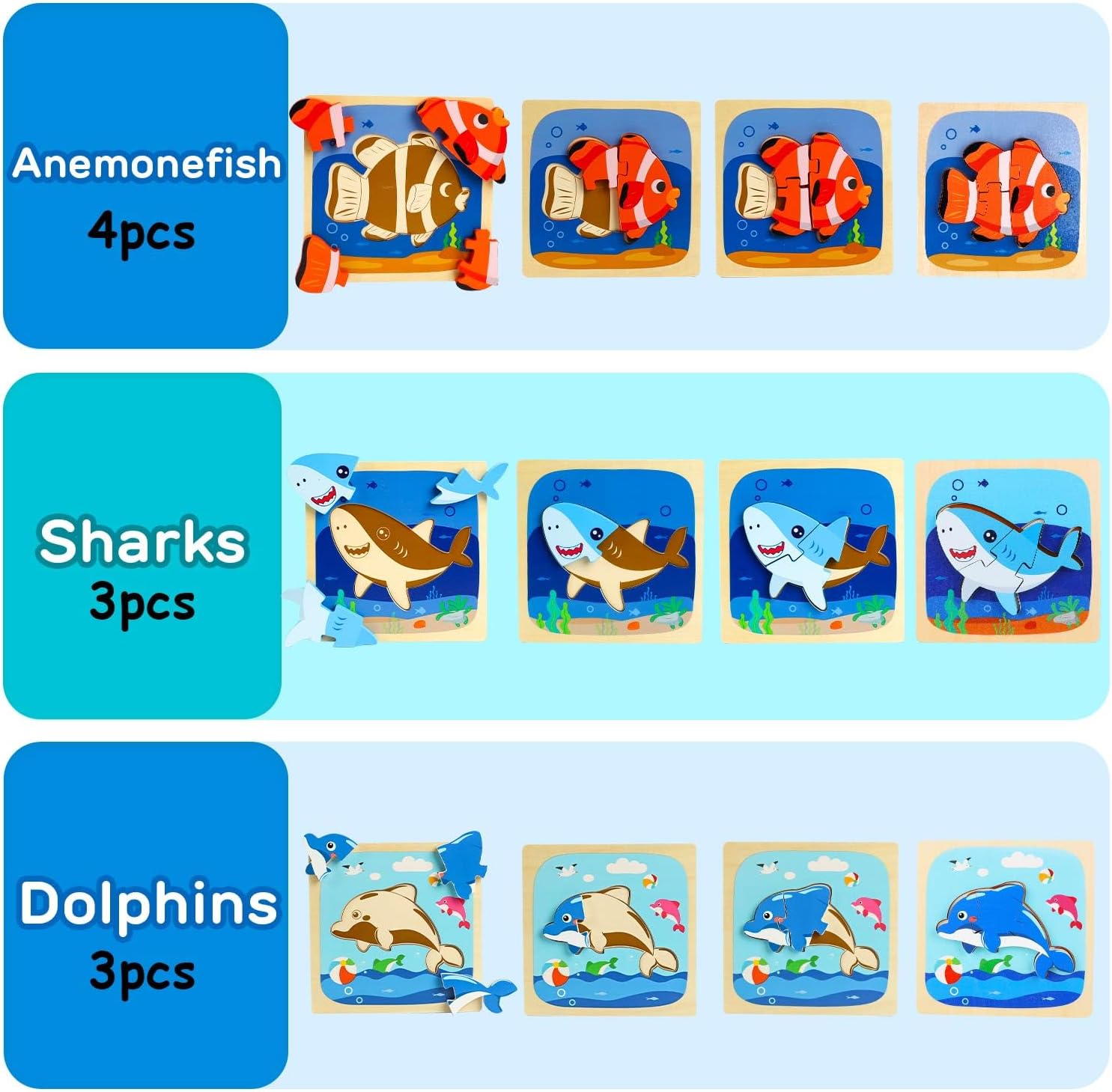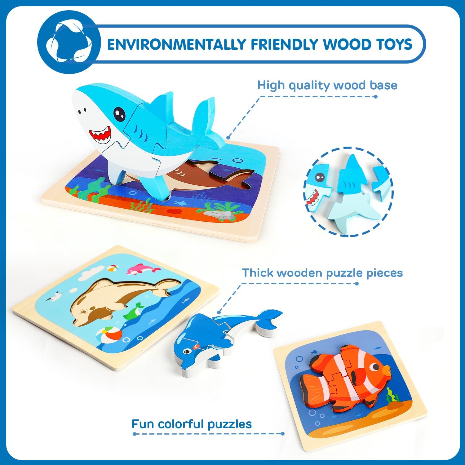 TOY Life 3 Piece Toddler Puzzles Ages 2-4, Wooden Animal Shape Puzzle for Toddlers 1-3, Educational Montessori Toys for 1 2 3 Year Old Baby Boys Girls, STEM Learning Preschool Toys Game Gifts for Kids