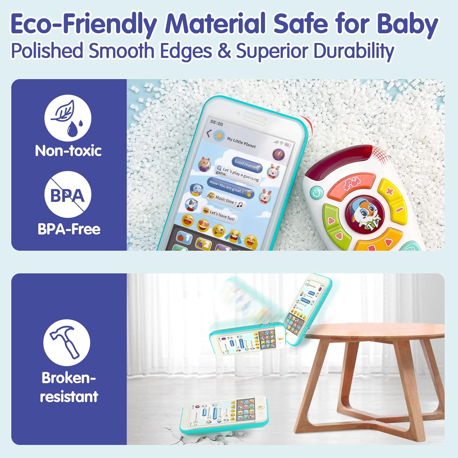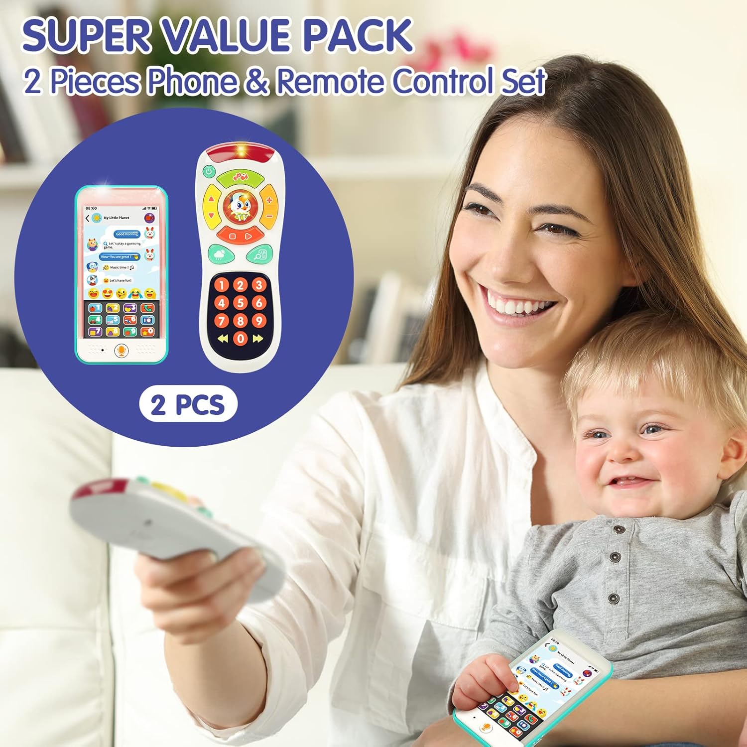 【2PCS Baby Phone & Remote Control Super Value Pack】The super value pack includes a baby phone toy & a baby remote control toy. Babies love to imitate what they see their parents doing. This remote toy and phone bundle perfectly fulfill their dream to act like parents. Through imitative play, the toys introduce numbers, shapes, colors and help develop fine motor skills. Great choice as baby toys 12-18 months, toys for 1 year old boy gifts, 1 year old toys for boys, toys for 1 year old girl gifts