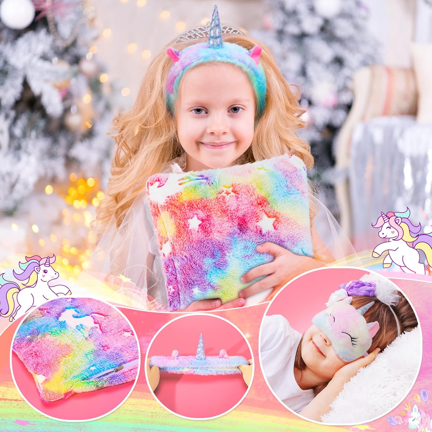 12 PCS UNICORNS GIFT FOR GIRLS – Our unicorn toys gift set fits girls aged 3-8. Including 1 tie-dye unicorn glowing blanket, keychain, headband, eye mask, greeting card, crossbody bag, unicorn gift box, 12 oz tumbler, sunglass, unicorn pillow case and drawstring backpack,crystal bracelet and necklace. Unicorn toys set is perfect Christmas gift for girls, girls birthday gifts for 6 7 8 9 10-12 year old, Children’s day gift, girls toys.