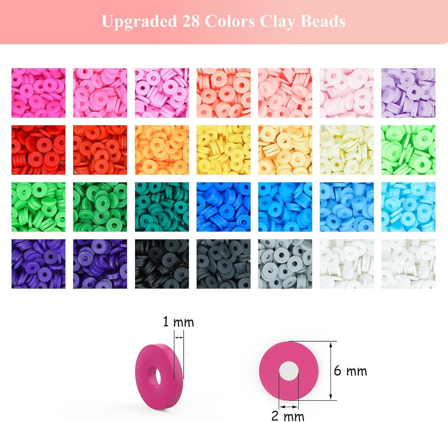 Safe Material: Crafted from premium polymer clay, these small, cute beads are known for being lightweight, non-toxic, odorless, colorfast, and waterproof, ensuring durability even when submerged in water. Each bead has a 6mm diameter, a 2mm hole diameter, and a 1mm thickness, providing comfort and suitability for a wide range of jewelry-making projects. A friendly reminder: Due to their small size, it is advisable for children to use them under adult supervision to prevent accidental ingestion. (Suitable for kids age 6+)