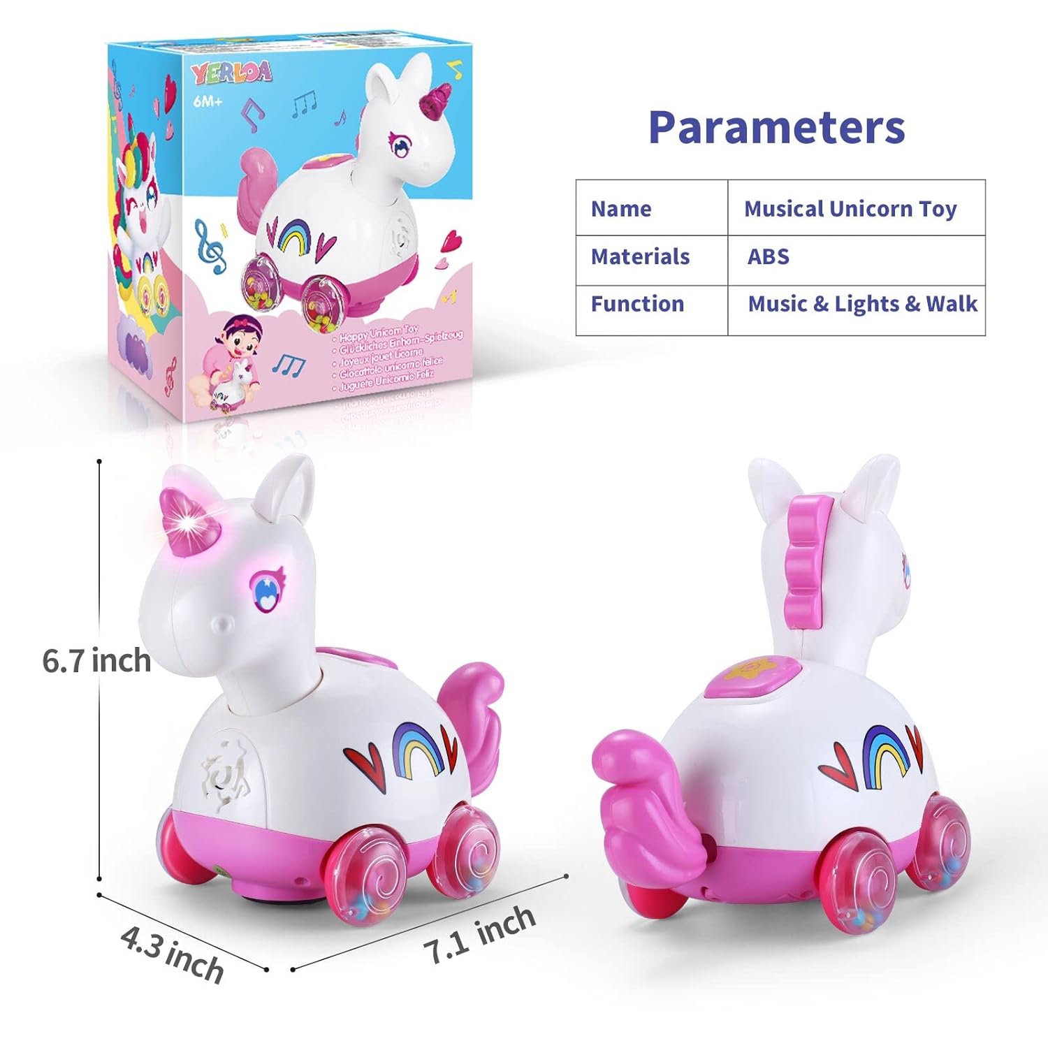 Encourage Baby to Crawl and Build Muscles: Press the button on the back of the unicorn, it will move, shake its head, and play songs and music with LED lights! It will attract your baby to chase and crawl. Ideal for babies to develop gross motor skills and learn how to control large muscles for walking, running, jumping, and body balance during play. Perfect as a gift toy for 6 to 12-18 months baby toys, 6 month old baby toys, 1 2 year old boys girls girls boys.