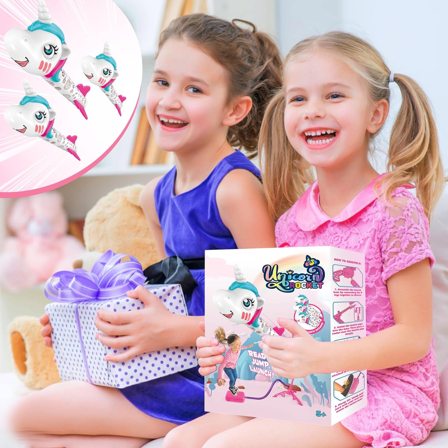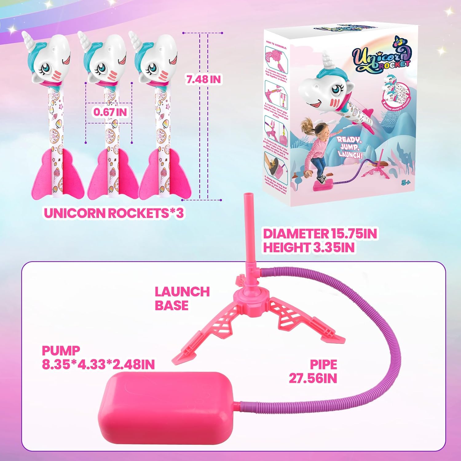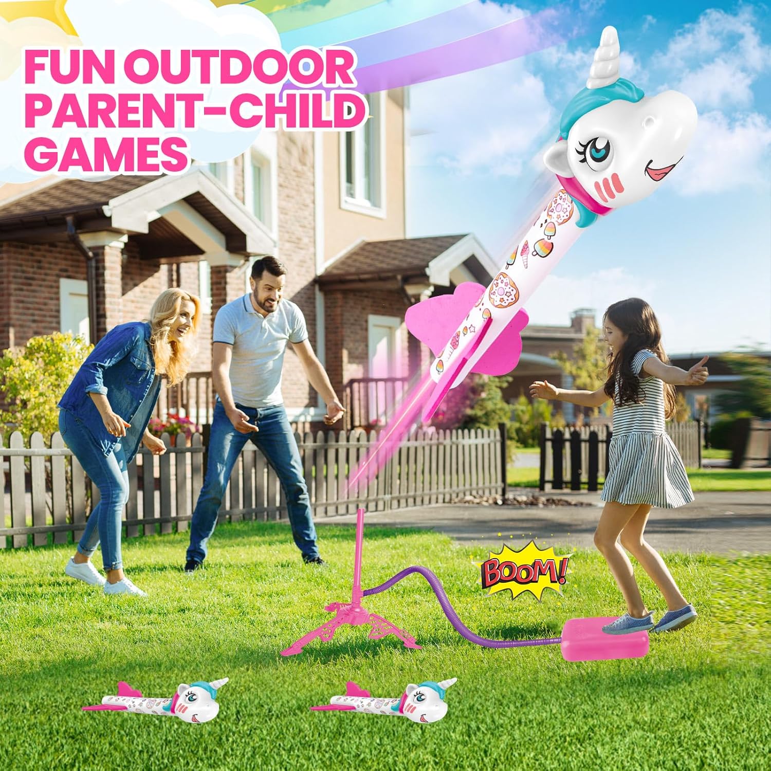 YOTOY Unicorn Rocket Launcher for Kids – Fun Outdoor Toys Launch of up to 100 Ft, 3 Unicorn Rockets, Gifts for 3 4 5 6 7 Years Old Girls and Boys
